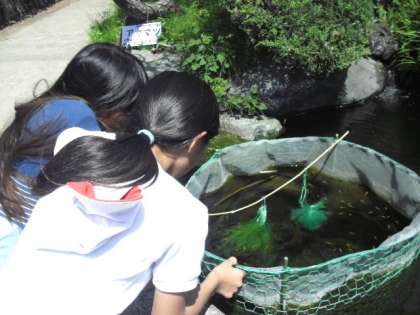 近隣の方が、学校の池にメダカを放流してくださっています。今、メダカのたん生を学習している5年生は、いつでもメダカやメダカの卵を観察することができます。ありがとうございます。(5月19日)