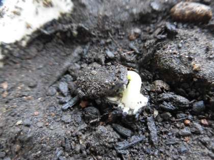 あるものとは...ヘチマのたねをうえたはちうえです!たねから根がピョコンと出ていたのです。「かたいからからよく出てきたなあ。」と思いました。ここからどのように生長していくのか、楽しみです♪下に写真をのせるので見てください。