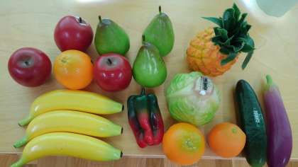 くだもののもけいとして、じゅぎょうで見本につかったり、音楽の時間に音に合わせてシャカシャカふってつかいます。