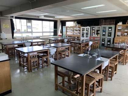 きょうしつのなかには じっけんでつかうどうぐなどが たくさんおいてあるよ。