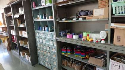 たなには、ずこうの おべんきょうに つかう どうぐが ぎっしり。