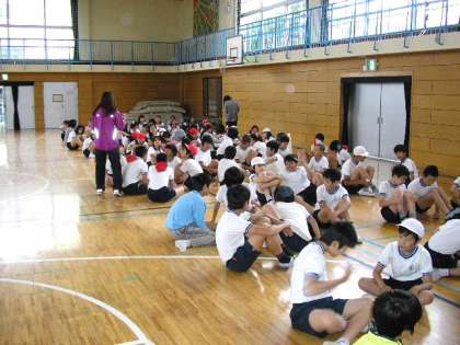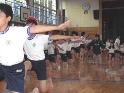 雨だったので、体育館で100m走の並び方をした後、ソーラン節の練習をしました。(5月24日)