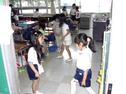 外は雨だったので、教室で運動会の練習をしている子どもがいました。(5月24日)
