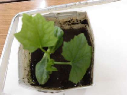 4組のヘチマは、ふたばとは形がちがう本葉が出て大きくなってきました。これからのヘチマのせい長や4年生のみなさんのせい長が楽しみです。4組たんにん