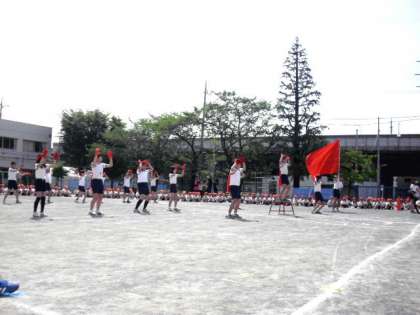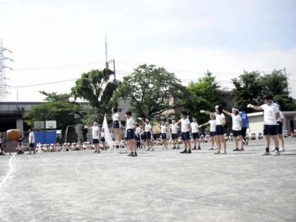 応援団に合わせてエールの交換を練習しました。(5月25日)