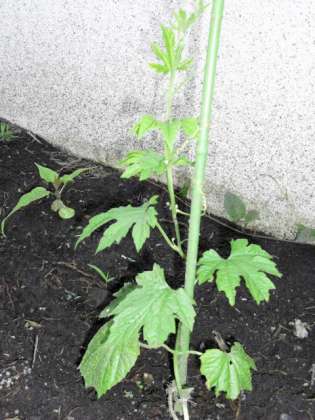 子どもたちが植えたゴーヤや校長先生が植えたインゲンマメが大きくなってきました。この画像は子どもが撮影した物です。(5月25日)