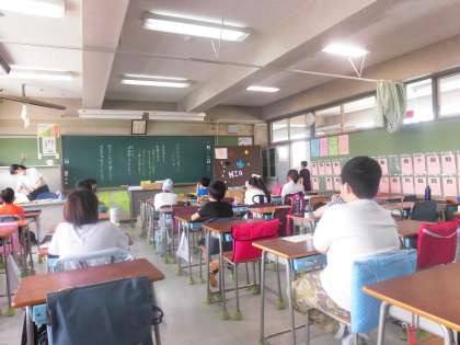 午後のBグループは、熱中症対策として、教室で始業式を行いました。