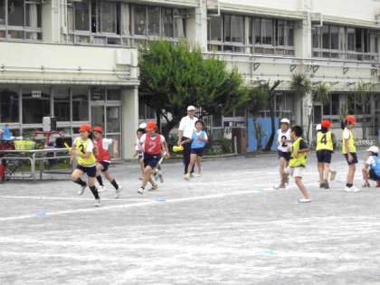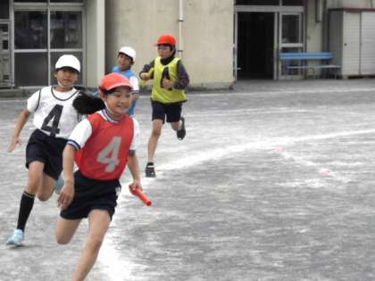 バトンの受け渡しを中心に練習しました。(5月26日)