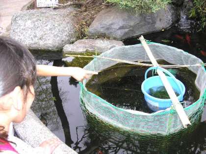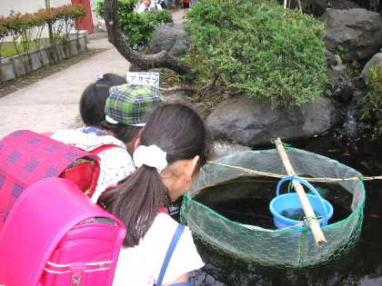 池にいるメダカの様子を見ていました。(5月26日)