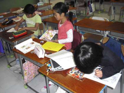 今日は、運動会リハーサルで校庭遊びができないため、校舎内で静かに遊んでいました。(5月27日)