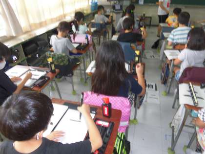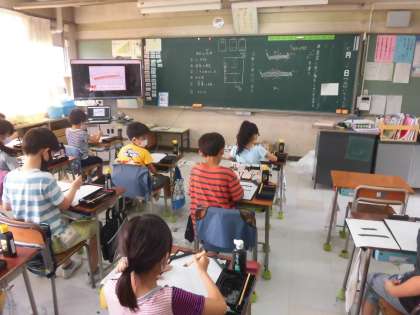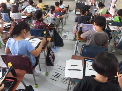 書写【3年生】 公開日 2020/07/02 更新日 2020/07/02 3年生 7月1日 初めて毛筆を使った学習を行いました。 書写を行う際の心がまえやすわり方、用具の使い方から学びました。 授業の後半では、ほ先の向きや書き終わりの筆の動かし方に注意しながら【二】を書きました。 集中して書くすがたが見られました。 3年