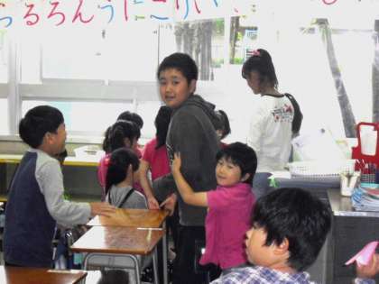 教室で6年生のお兄さんやお姉さんと遊んだり本を読んだりしてすごしました。(5月29日)