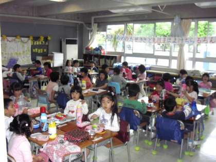 みんなで楽しくお弁当を食べました。(5月29日)