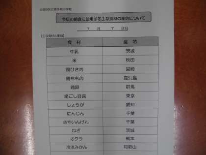 今日は七夕献立です!天の川や笹の葉、短冊、お星さまに見立てて、オクラやさやいんげん、そうめんなどを使いました。子どもたちも喜んで、たくさん食べてくれました!