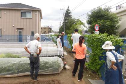 喜多見小学校BOP前に畑をもつ農家の方にきょうりょくしていただきました。