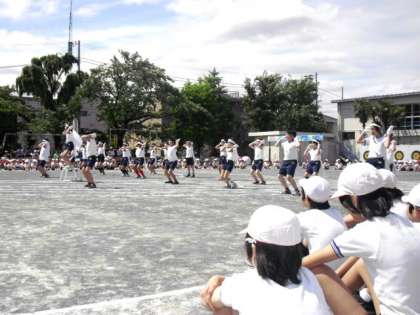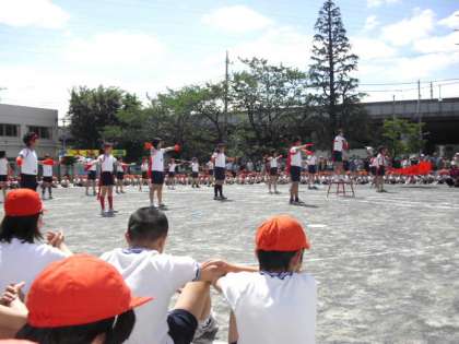 お互い、全力で正々堂々と戦うために、赤は白を、白は赤を応援しました。力いっぱい応援し合い、40周年の運動会を盛り上げました。(5月31日)