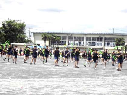 カーパイとは、沖縄の梅雨があけるころにふく、強い南風のことです。40周年を祝う、力強い踊りで、喜多見小学校に夏の風を呼びこみました。(5月31日)