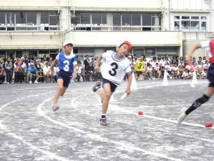 赤と黄色が赤チーム、白と青が白チームに分かれ、選びぬかれた選手たちの力強い走りでした。(5月31日)