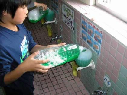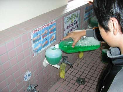 保健委員会は、毎日流しの手洗い用の石けんを補充しています。(6月1日)
