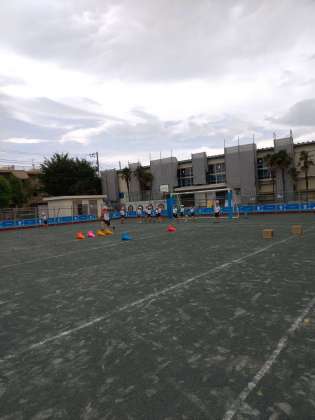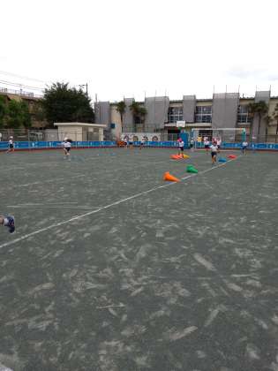 小型ハードルの置く位置やどのように跳ぶことで、リズムよく跳ぶことができるのかを考えながら学習を進めています。