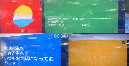 PC上のノートに、メッセージを書いたり絵をかいたりしました。