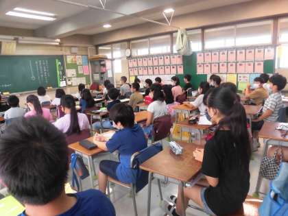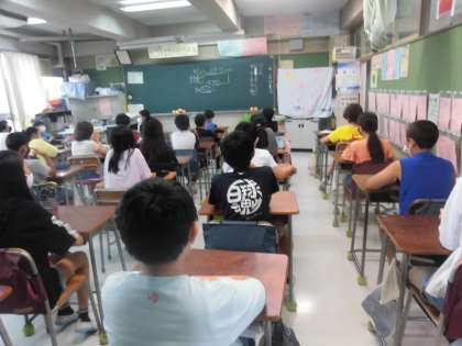 終業式も例年とは異なり、各教室で放送によるものとなりました。子ども達は、放送であっても、1学期の節目として、校長先生の話や校歌をしっかりと受け止めていました。式後、生活指導主任の丸山先生から、夏休みの生活に関する注意を聞き、全てが終わりました。