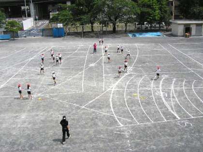 相手のディフェンスをかわしながら味方のゴールへ運ぶ練習をしました。(6月3日)