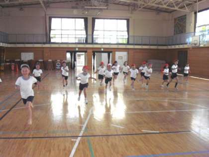シャトルランの記録を、5年生のお兄さんやお姉さんに見てもらいました。(6月9日)