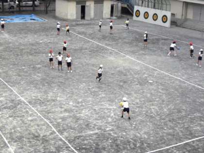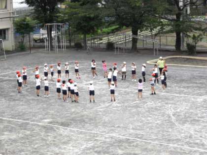 子どもたちが進んで準備体操を始めています。(6月9日)