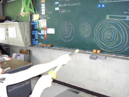 空気でっぽうをしながら筒の中にある空気の様子を観察しました。(6月9日)