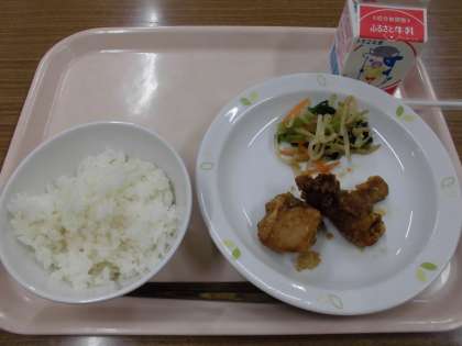 中華風の献立です。ユーリンチーのたれは、ねぎやしょうが、にんにくを入れて、香りよく作りました。ごはんがすすむ味です。