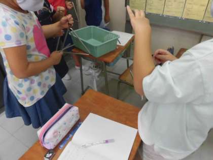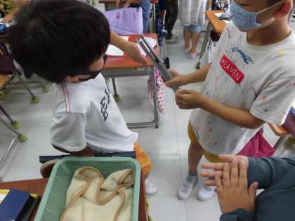 理科(3年生) 公開日 2020/09/29 更新日 2020/09/29 3年生 9月23日 理科「音でつたえよう」の学習をすすめています。 楽器から音が出ているときの様子を観察しました。 トライアングル・トーンチャイム・たいこ等、音が出ているときにはどの楽器もふるえていることに気が付きました。 音とふるえの関係を学ぶことができました。 みなさんが一度は遊んだことがある糸電話も実は、今日学習したことと関係があるのですよ。 この続きは、次の理科の学習で。 3年