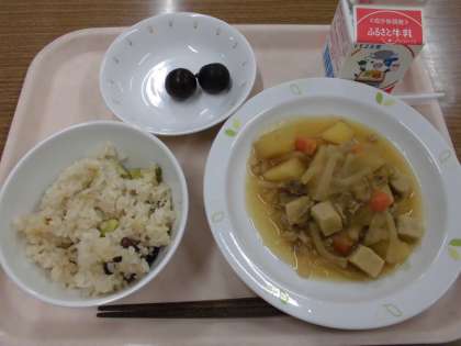 萩ごはんは、秋のはじめに咲く萩の花をイメージしたごはんです。小豆と枝豆を入れて炊いています。
