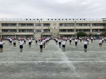 今日は退場まで通して行うことができました。まだ、リズムに合わせてというところでは課題もありますが、今後の練習でリズムに合わせて“心を一つに”踊れるように指導を続けていきます。