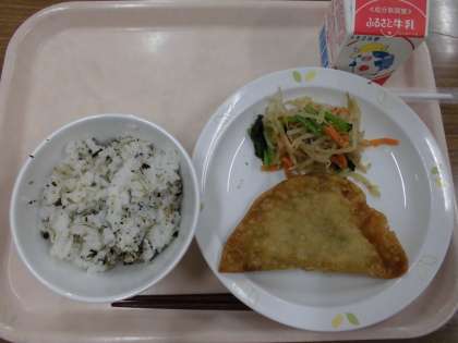 運動会の本番が近付いてきたので、給食人気ナンバーワンメニュー「ジャンボぎょうざ」で頑張る子どもたちを応援します。給食室から「練習おつかれさまでした」の気持ちと「本番全力を出し切れますように」の気持ちをたっぷり込めました!