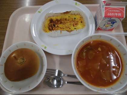 オムレツには、ツナとチーズがたっぷり入っています。具だくさんで、おなかもいっぱいになりました。