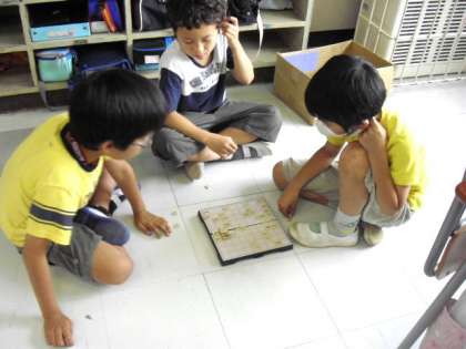 教室で将棋やオセロをしたり、校庭で体を動かしたりして休み時間を過ごしていました。(6月16日)