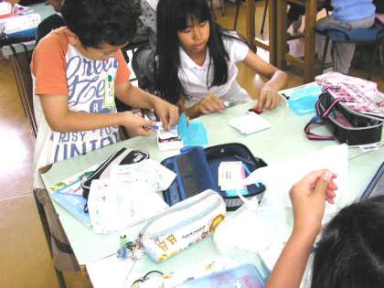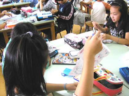 裁縫をしました。慣れた子どもは教えていました。(6月17日)