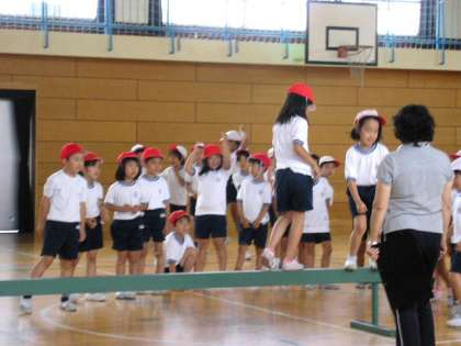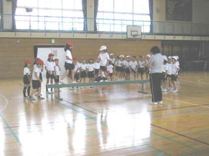 体育館で、平均台を使った運動をしました。(6月21日)