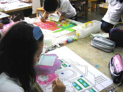先週の続きで、絵の具を使って色をぬりました。(6月21日)