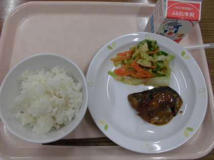 さばのみそ煮は、給食室の大きな鍋で2学年ごとに煮て作ります。トングで持ち上げるだけで崩れそうになるほど、とってもやわらかくできました。子どもたちも先生たちからも人気のメニューです。