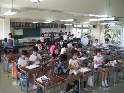「ラバースコンチェルト」の合奏をしました。いろいろな楽器に挑戦です。(6月21日)