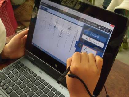 子どもたちは、国語・算数等の問題をタブレット上で楽しそうに解いていました。