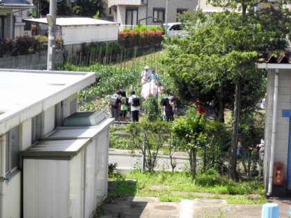 今日も、昨日に続き暑い日となりました。下校途中、自分たちが育てている作物を収穫していました。(6月22日)