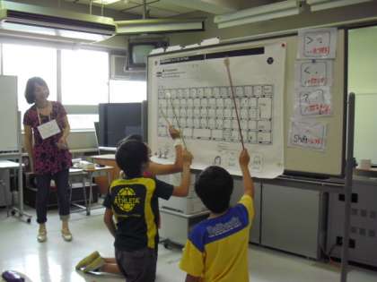 外国語活動(6年生) 公開日 2011/06/23 更新日 2011/06/23 6年生 今週の英語の授業はアルファベットの発音を練習しました。 パソコンのキーボードに並んでいるアルファベット探しも楽しみました。(6月23日) 6年