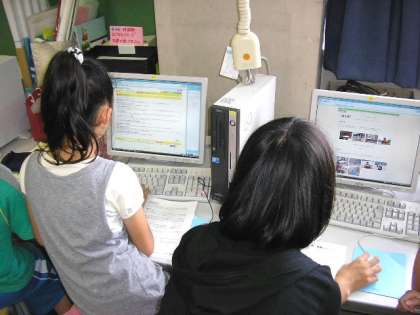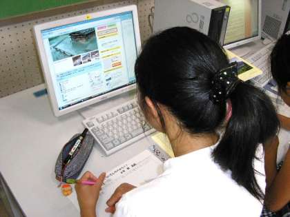 日光林間学校に行く前に、コンピュータを使って東照宮のことなどを調べました。(6月23日)