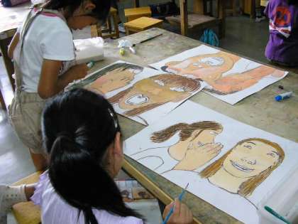 自分と友達の絵を描いています。(6月24日)