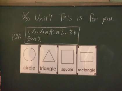円・三角形・正方形といった形を英語で何と言うのかを学習しました。