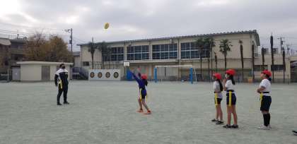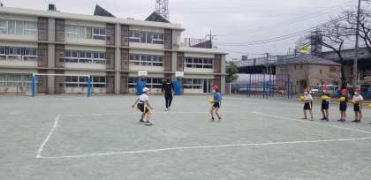 ラグビー教室(5年生) 公開日 2020/12/03 更新日 2020/12/03 5年生 今日は、リコーラグビー部の選手の方々にタグラグビーを教えていただきました。 ボールの投げ方や取り方、1対1など基礎的な動きを教わり、たくさんボールに触れることができてどの子も満足そうでした。 1対1では、選手と戦うことができた子もいて、貴重な体験となりました。 (12月2日) 5年