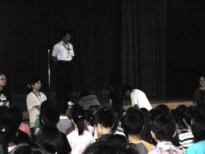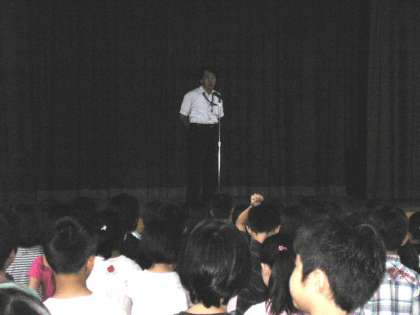 校長先生の話の後、転入生の紹介がありました。(6月27日)
